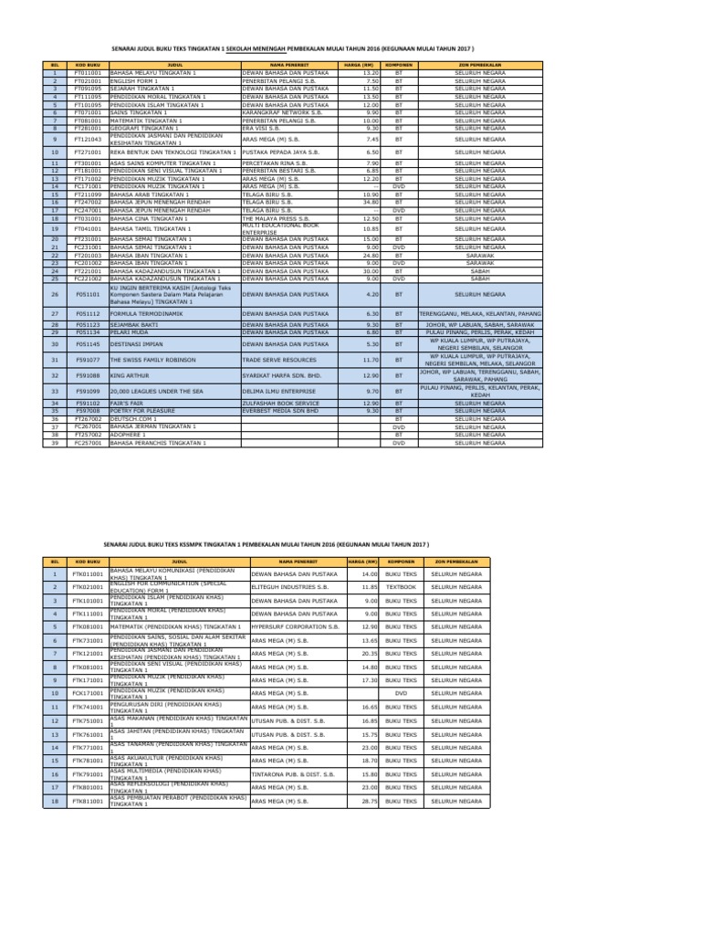 0 ratings0% found this document useful (0 votes). Tetapi sekarang ini bantuan ini telah pun ditambah ke beberapa jenis sekolah yang lain termasuk sekolah menengah agama kerajaan negeri. Savesave senarai buku teks sekolah menengah 2019 for later. Pengenalan buku teks digital akan diperkenalkan di sekolah menengah terlebih dahulu, kemudian di sekolah rendah. Akhir sekali harapan kami semoga anda berpuas hati dengan perkhidmatan kami.